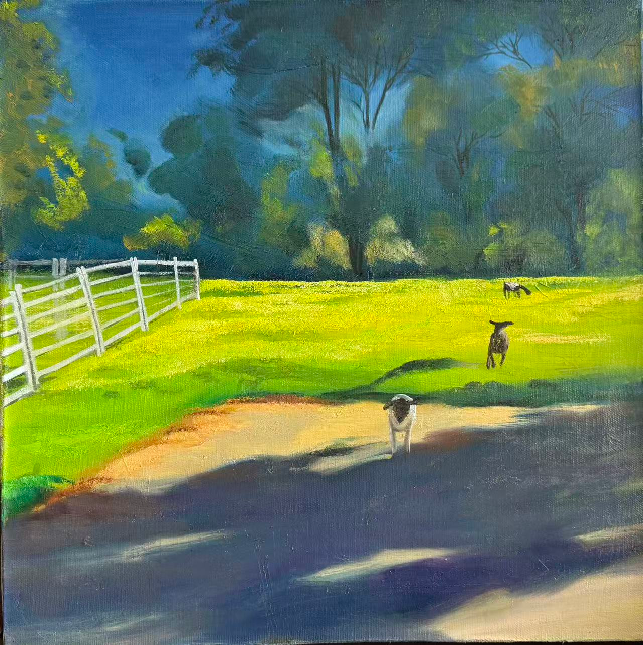Three Lambs Running Toward Me